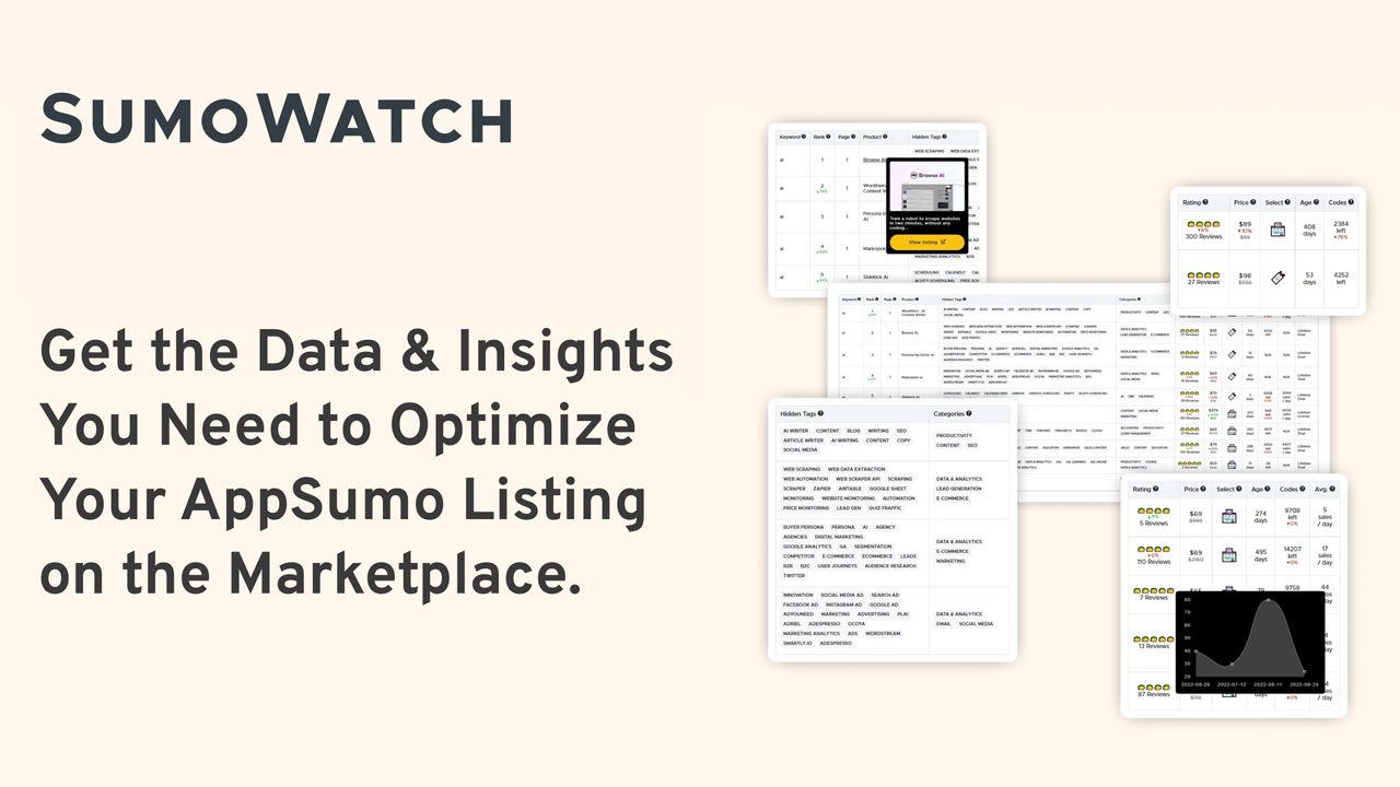 An essential AppSumo marketplace intelligence tool that gives you hidden insights about your competitors and research products data.